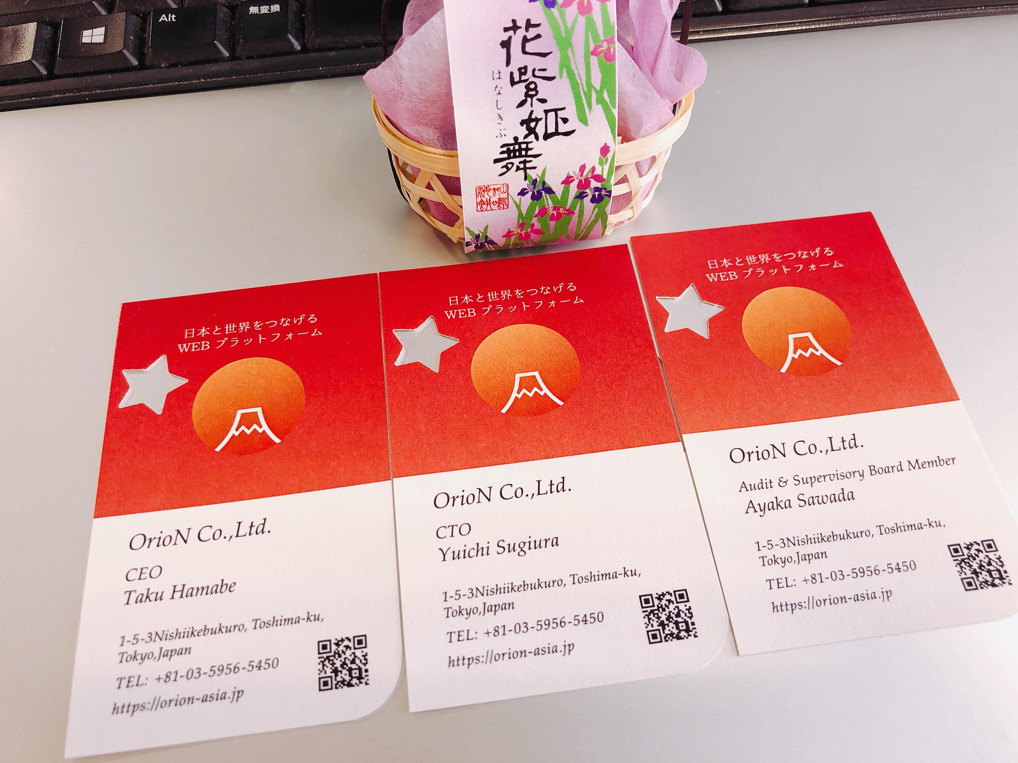 2018.06.20 OrioN 株式会社OrioN名刺。 ウィナスの子会社、株式会社OrioNの名刺が完成しました。 デザインはウィナスで行いました。 『日本の食・文化・ブランドを世界へ』を コンセプトにしているため、 和紙を使用していたり、 富士山をいれたり、 ぱっとみて印象に残るように、オリオン座にちなんで ★型にくりぬいていたりと、 こだわりと想いがいっぱい詰まっています。 Twitter Facebook はてなブックマーク