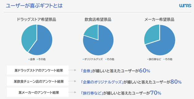 - 景品選定:ユーザーに喜ばれる景品を用意し企業ロイヤリティを高める。