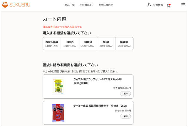 仕入れた全ての商品の賞味期限の管理をしており、自動的に賞味期限の近い商品から福袋に入る仕組みを構築しました。そのため、メーカーよりご提供いただいた商品が賞味期限切れを起こしてしまうことなく福袋化されるため、弊社内でのフードロス回避も実現。スーパーの棚の一番前の商品から手に取っていただく感覚を、「SUKUERU」でも可能にしました。
