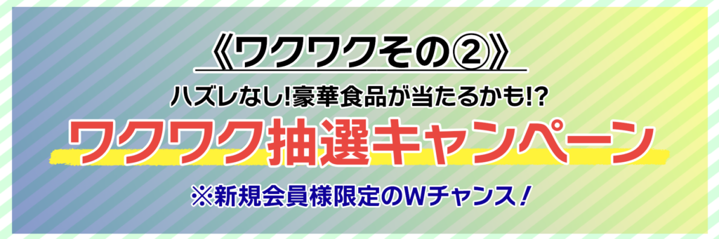 豪華食品が当たる!?新規会員限定のWチャンス!